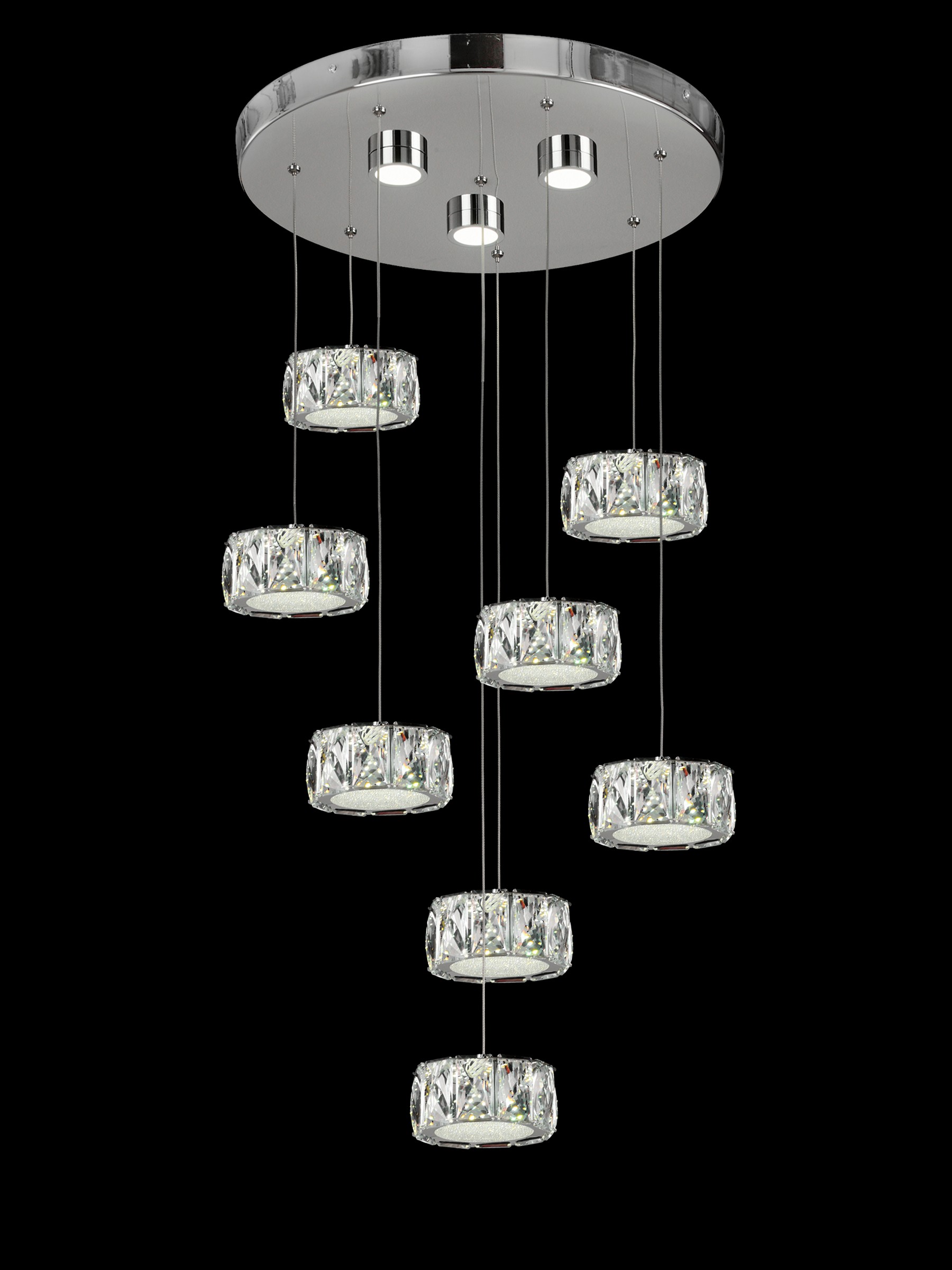 COLGANTE LED DE 8 LUCES REDONDA CON DIFUSOR ACRISTALADO.